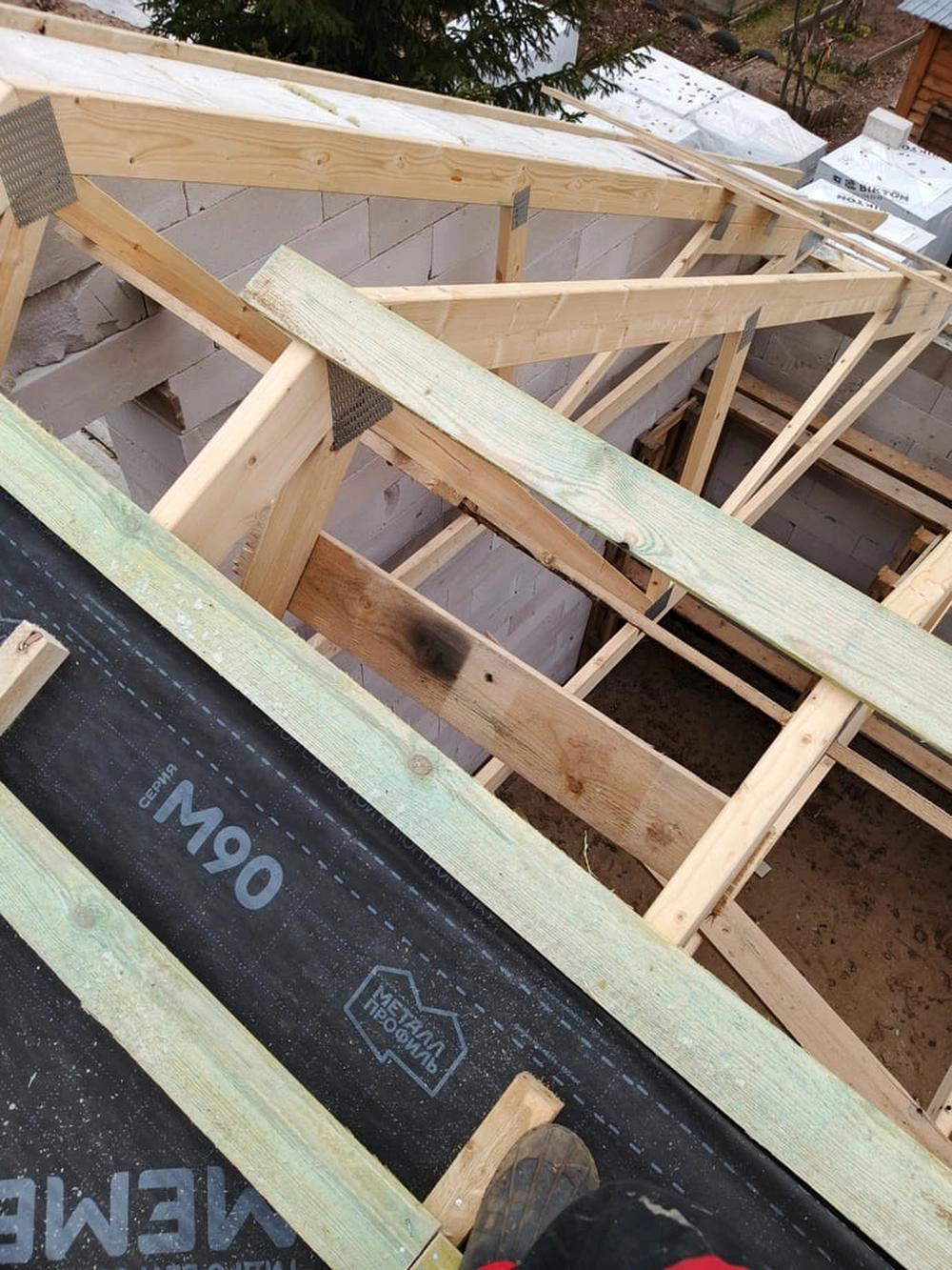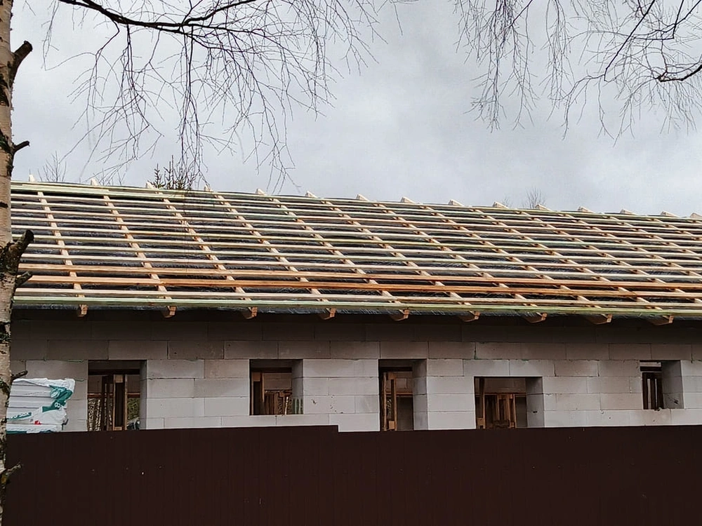 Устройство cтропил и обрешотки, монтаж металлочерепицы, монтаж снегозадержателей